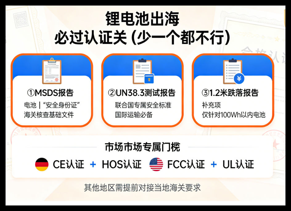 MSDS报告:即化学品安全技术说明书,相当于电池的“安全身份证”,详细标注化学成分、应急处理措施,是海关核查的基础文件。