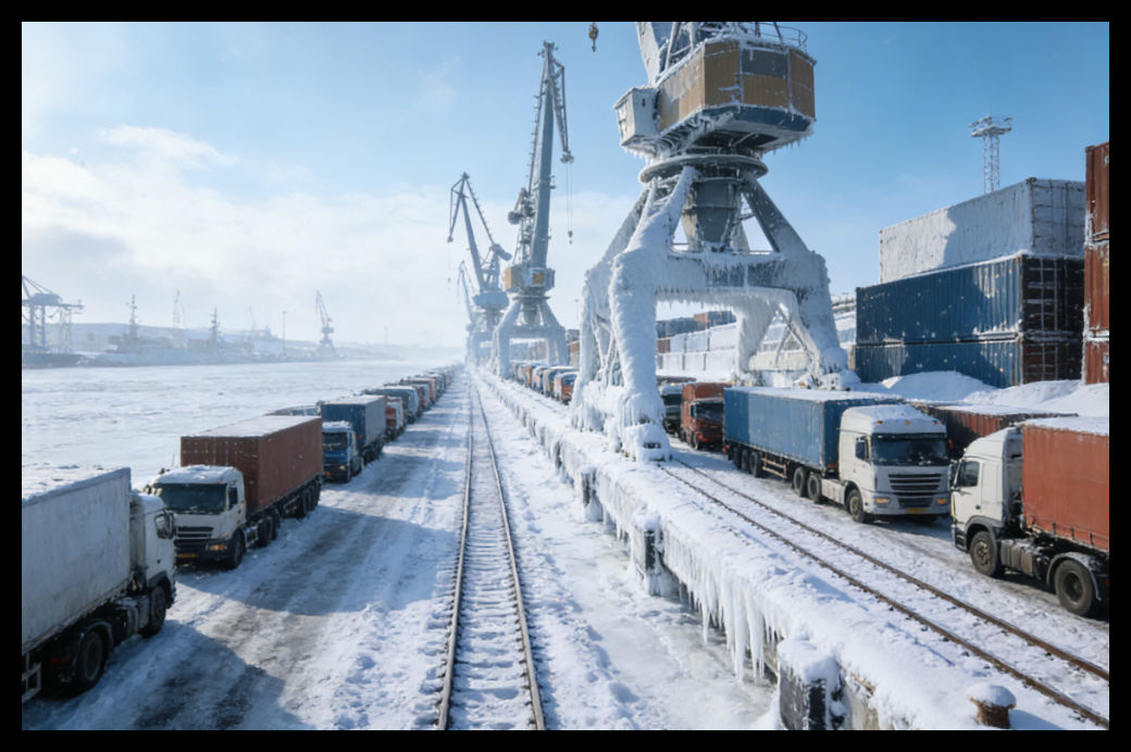 陆侧交通:全面告急:设备冻结、道路及铁路积雪结冰,导致货物进出港严重受阻。目前,卡车时隙已全部约满,无新增可用额度;铁路班列频繁出现延误,部分甚至直接取消,货物疏港陷入困境。